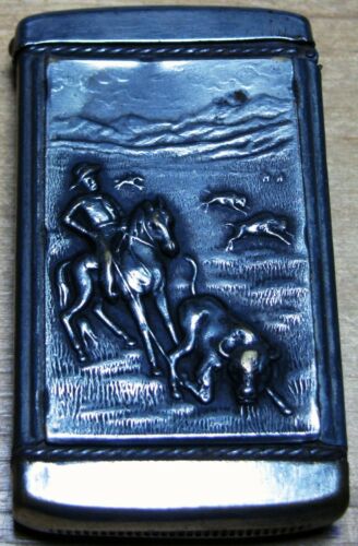 Antique Vintage Match Snuff holder? Advertisement Box Chicago Buffalo Cowboy