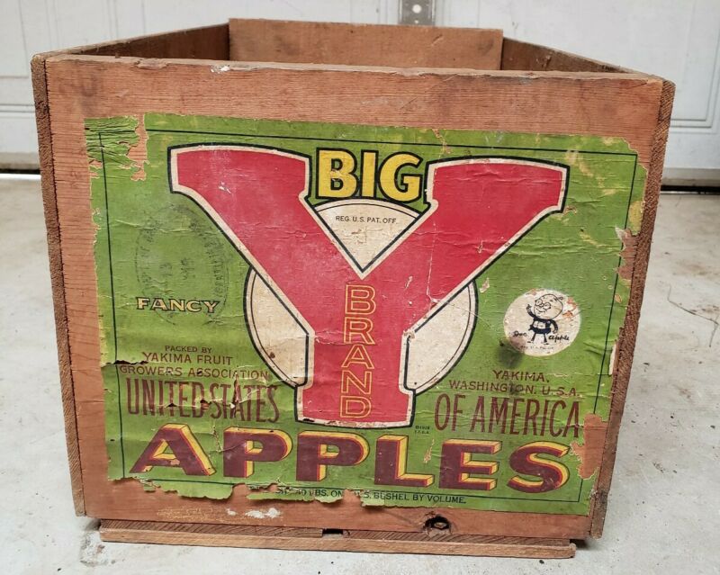 Title (ebay affiliate link): Vtg Victorian Original Big Y Brand Apple Wood Crate Yakima Paper Label Early