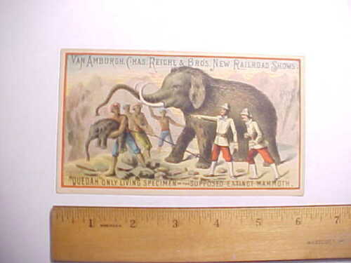 Title (ebay affiliate link): 1870s VAN AMBURGH AMERICAN CIRCUS TRADE CARD QUEDAH THE GIANT LIVING MAMMOTH