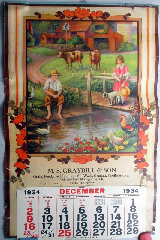 Title (ebay affiliate link): THREE M.S. Graybill & Sons - Grain Etc. Calendars, Bareville PA 1934, 1942, 1953