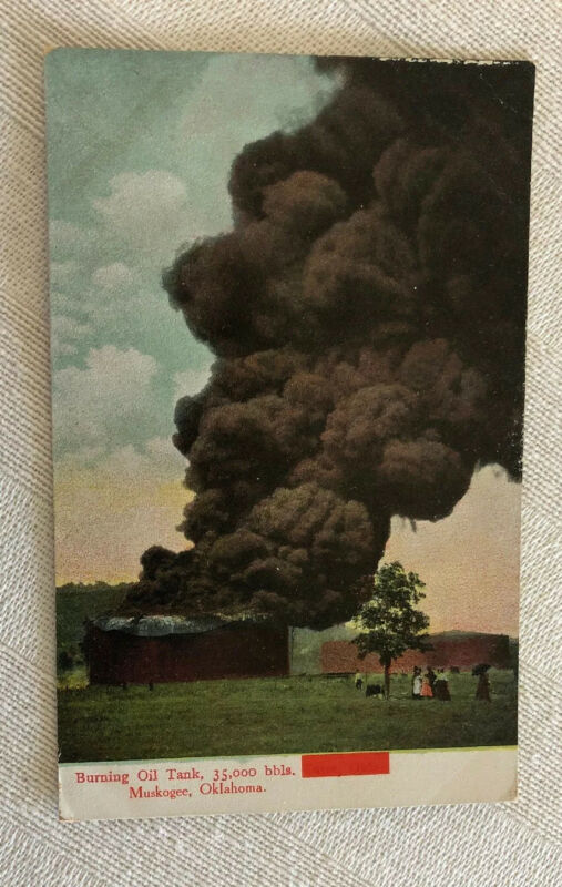 Title (ebay affiliate link): c1907 Muskogee, OK OKLAHOMA 35,000 Barrel Oil Tank Burning