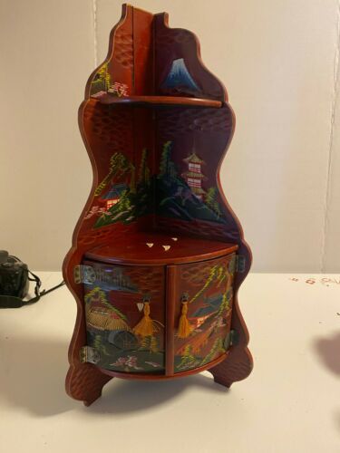 Title (ebay affiliate link): Vtg Folding Hand Painted Oriental Lacquer Wood Free Standing 3 Tier Corner Shelf