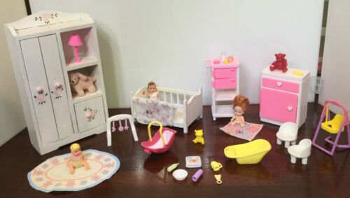 Large Barbie BABY FURNITURE NURSERY KRISSY CRIB Accessories Toy LOT