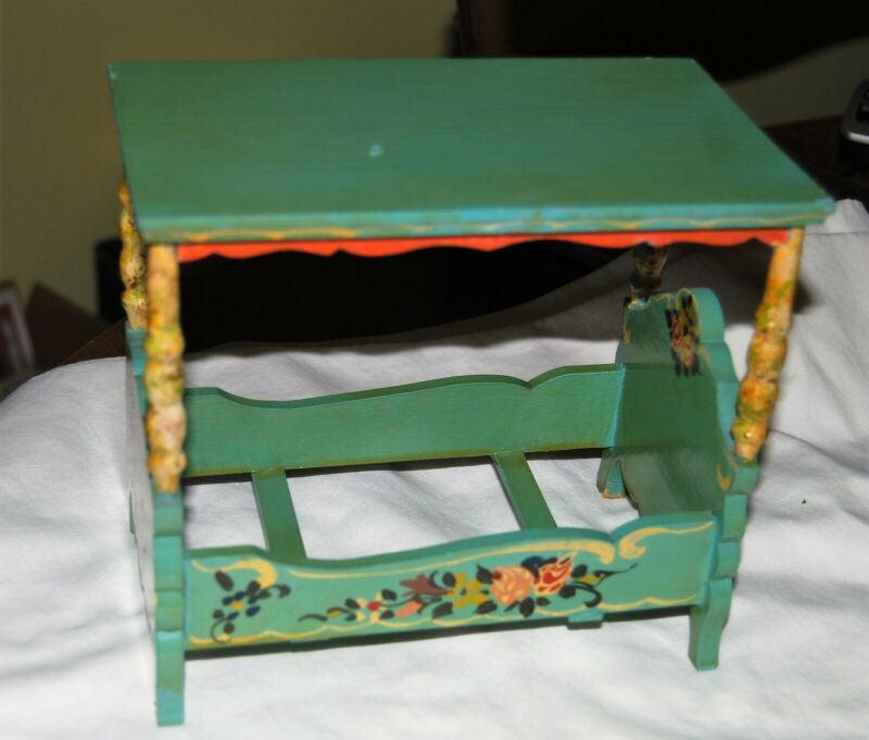 Great vintage canopy bed dollhouse furniture Made in West Germany 7.5"x4.75"x7"