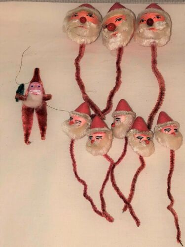 LOT OF 9 VINTAGE CHRISTMAS SANTAS, PACKAGE TIES , CHENILLE / PIPE CLEANERS