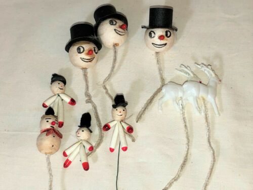 Title (ebay affiliate link): LOT OF 7 VINTAGE CHRISTMAS SNOWMEN & 2 REINDEERS, PACKAGE TIES ON PIPE CLEANERS