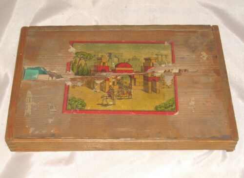 Vintage Child''s Wooden Block Building Set in Wooden Box