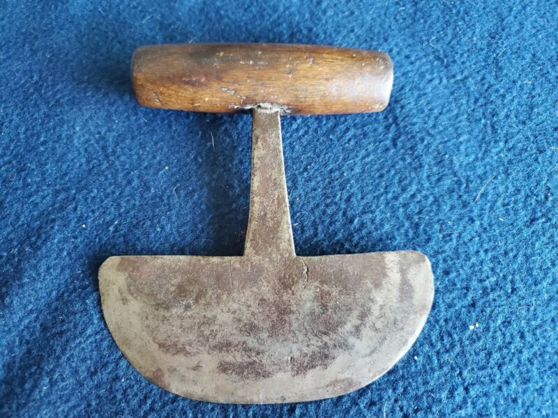 Vintage Half Moon Leather Knife Antique Tool Hand Tools Wood Handle Wooden RARE!