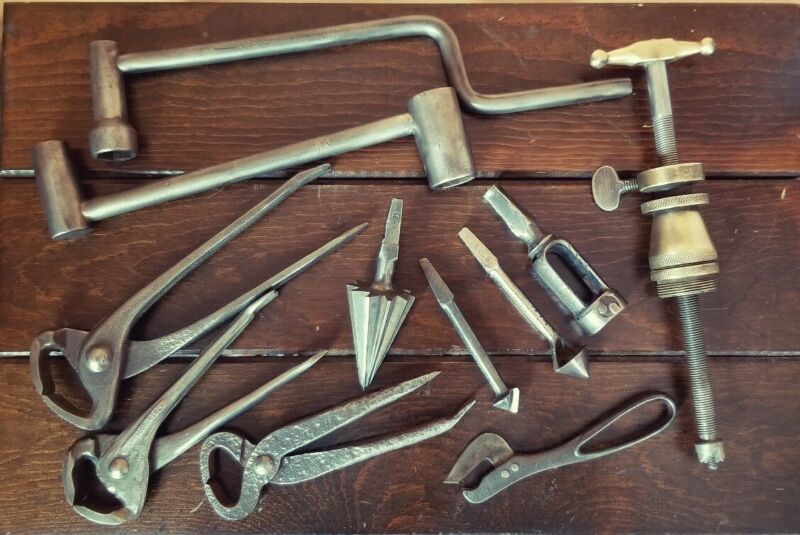 Title (ebay affiliate link): Antique Tool Lot wrench nipper countersink brace bits vtg