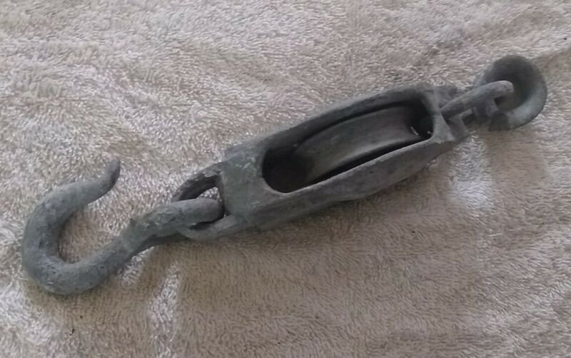 Title (ebay affiliate link): Genuine VINTAGE Galvanized Steel Block Tackle Pulley Free Movement Heavy