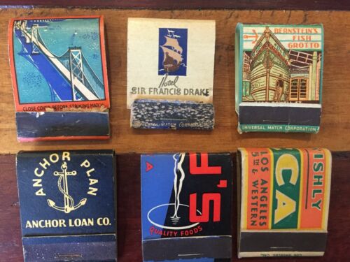 Lot of 6 San Francisco 1930s Match Book Covers Tinys Bernsteins Fish Grotto Luca