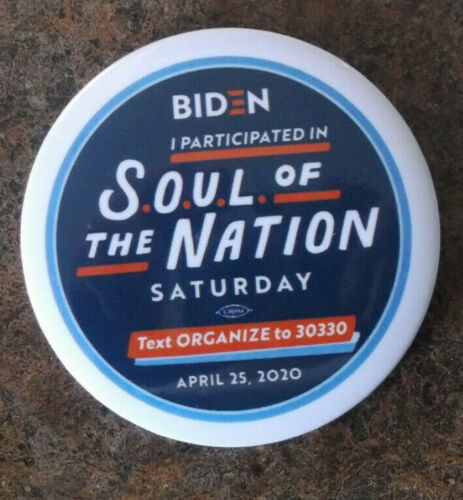 Title (ebay affiliate link): 2020 Democrat JOE BIDEN President Dated SOUL OF THE NATION 4/25/2020 logo Button