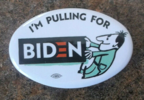 Title (ebay affiliate link): 2020 Democrat JOE BIDEN President Cute 50''s style Man PULLING FOR logo Button