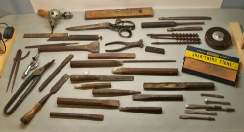 Lot of Random Vintage Tools Chisels,Snips,Auger Bits,Tape,Oilstone,Stanley