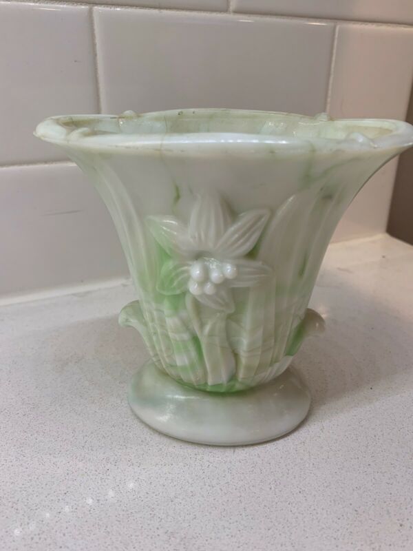 Title (ebay affiliate link): AKRO AGATE Slag Glass DAFFODIL LILY OF THE VALLEY VASE #658