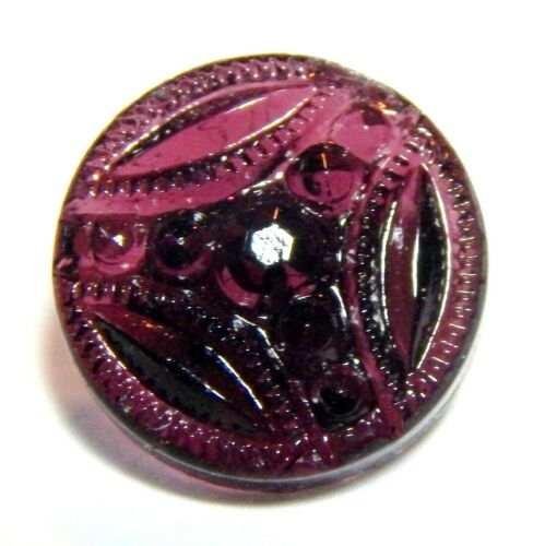 1930''S TRANSPARENT AMETHYST DEPRESSION GLASS BUTTON w/LOVELY PATTERN ON TOP