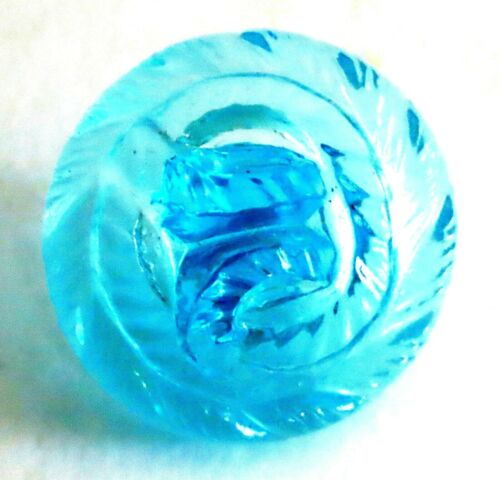 1930''S AQUA DEPRESSION GLASS BUTTON w/WOVEN ROPE RELIEF DESIGN