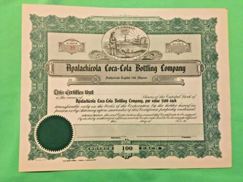Title (ebay affiliate link): B2) Vintage Coca Cola Stock Certificate Document Paper Apalachicola FL NOS COKE