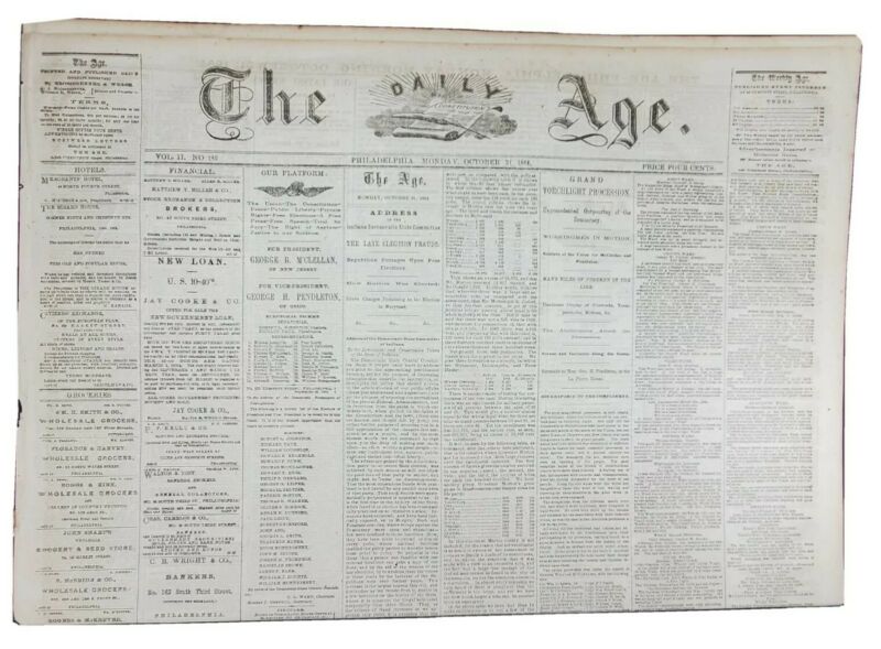 Title (ebay affiliate link): "The Daily Age" Newspaper printed in Philadelphia, PA Oct. 31, 1864