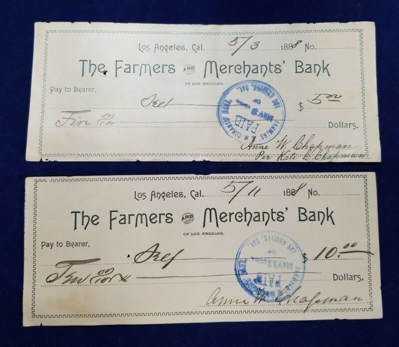Title (ebay affiliate link): ANTIQUE FARMERS & MERCHANTS BANK NOTE of LOS ANGELES