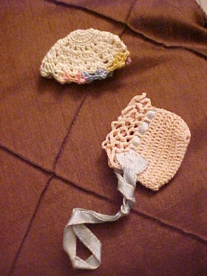 Exquisite Antique / Vintage 2 Crocheted Tiny Doll Hats