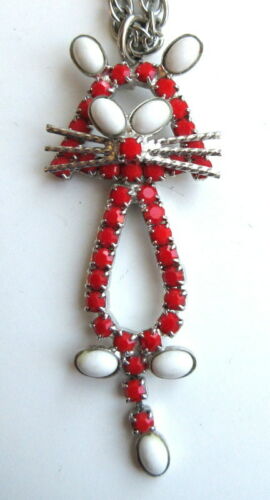 Title (ebay affiliate link): Modern Red White Milk Glass Rhinestone Modern KITTY CAT PENDANT NECKLACE