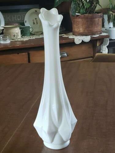 Title (ebay affiliate link): Vintage White Milk Glass 11" Swung Bud Vase Slanted Scalloped Opening