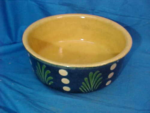 Orig 19thc YELLOWARE CAKE CROCK w Cobalt BLUE Surface DECORATION
