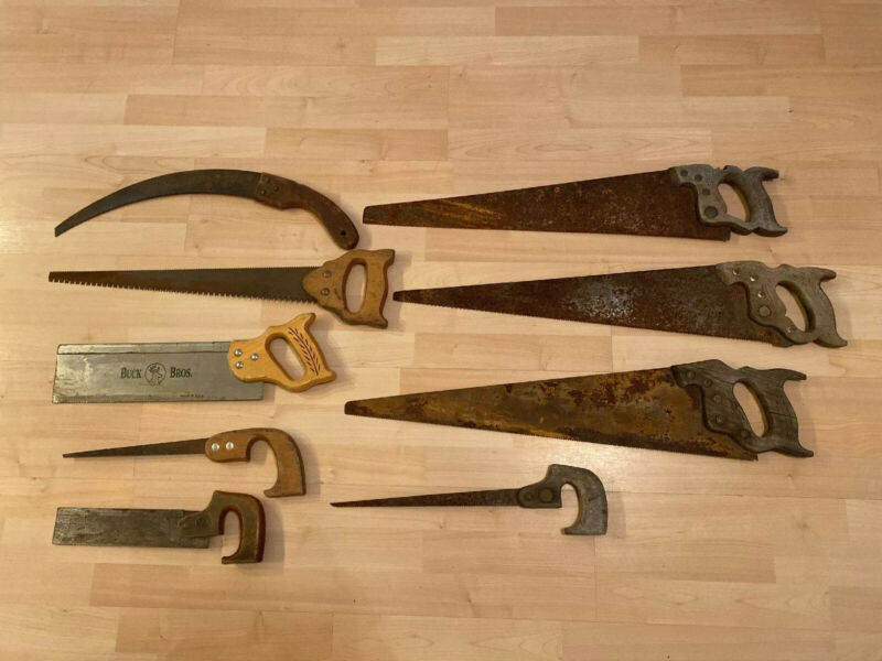 Title (ebay affiliate link): Vtg Antique Wooden Saw Lot Disston & Sons Buck Saw Hand WoodWorking & More