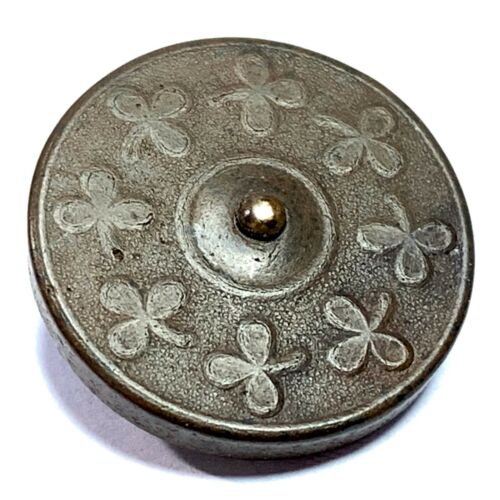 Civil War era 1851 Goodyear decorative shamrock pin shank rubber button - 915