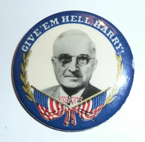 Title (ebay affiliate link): Political Memorabilia HARRY TRUMAN Image PIN BACK Give''em Hell Harry 33rd Pres.