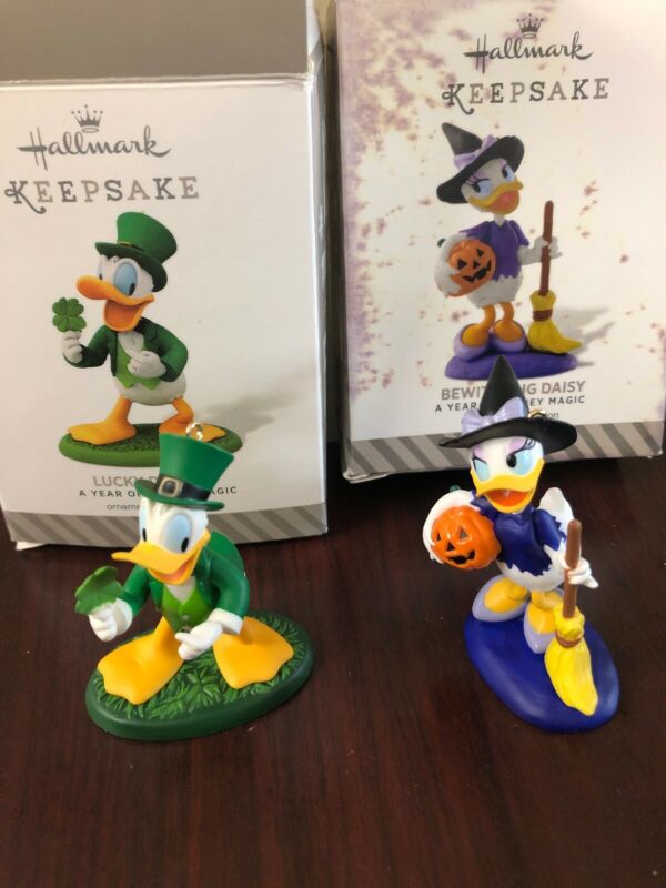 Title (ebay affiliate link): A Year Of Disney Magic Donald, Daisy Hallmark Keepsake 3 8 Leprechaun Witch