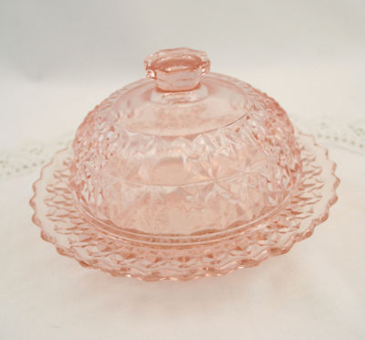 Title (ebay affiliate link): Jeannette Pink Holiday Button and Bows Cov Butter Dish