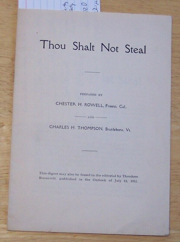 Title (ebay affiliate link): Thou Shalt Not Steal US politics Teddy Roosevelt Progressive Party 1912 Chicago
