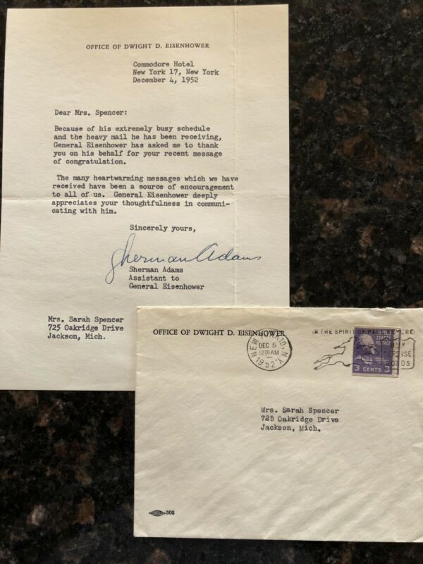 Title (ebay affiliate link): 1952 Letter From Sherman Adams On Behalf Of General Eisenhower