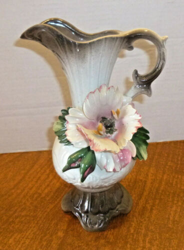 Capodimonte 9.5 inch Pitcher/Vase with Yellow/Lavender Flower Excellent Cond