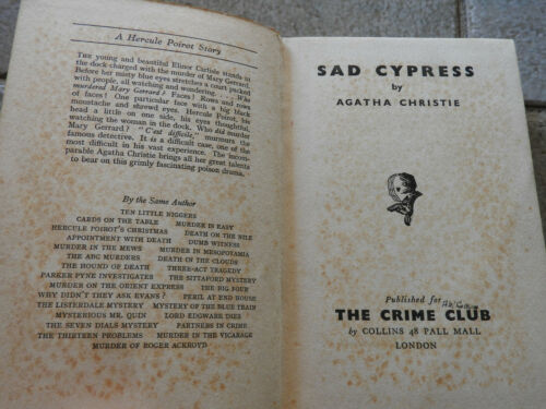 Title (ebay affiliate link): Agatha Christie. Sad Cypress. 1940 1st Ed? HB. Collins