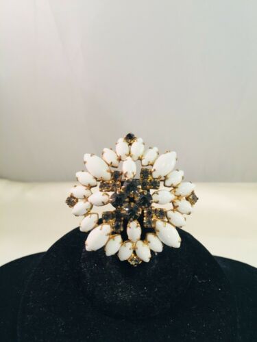 Vintage Juliana White Milk Glass Navette Rhinestone Gold Tone Brooch Pin