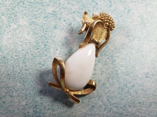 Signed Crown Trifari Milk Glass Poodle Dog Brooch/Pin Jelly Belly, Cute Pin