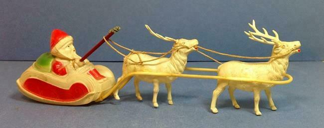 Title (ebay affiliate link): Antique Vintage CELLULOID SANTA SLEIGH REINDEER c1930s AS IS marriage damage