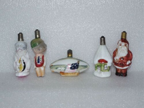 Title (ebay affiliate link): VINTAGE FIGURAL CHRISTMAS Santa Claus Blimp Cat Comic Boy TREE GLASS LIGHT BULBS