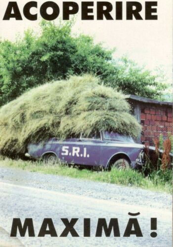 Romania 1990s Humorous Postcard ION BARBU Caricature Original Cover-up Car Hay