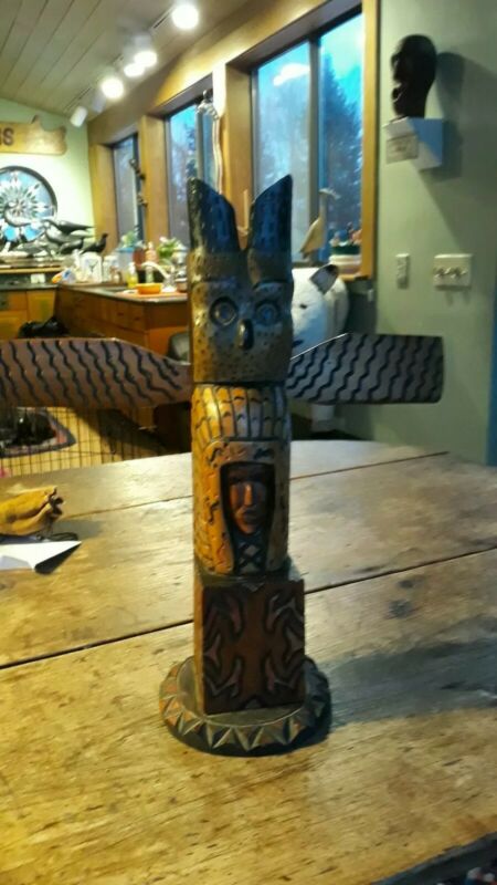 RARE QUEBEC CANADA INDIGENOUS MADE TOTEM DEDICATED SIGNED FOLK ART