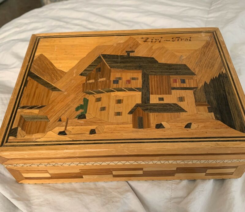 Antique Austrian Hand Carved Cigar Inlay Box