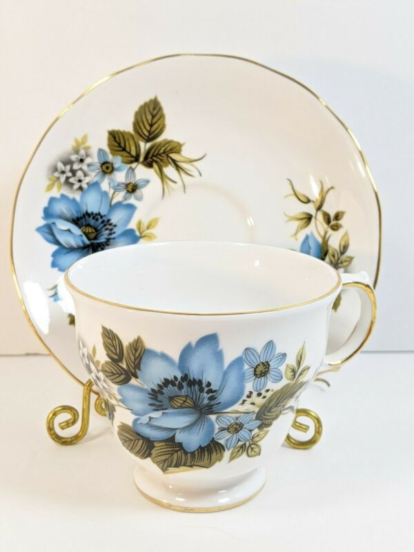Title (ebay affiliate link): VINTAGE QUEEN ANNE TEACUP & SAUCER BLUE DELPHINIUM FLOWERS BONE CHINA ENGLAND