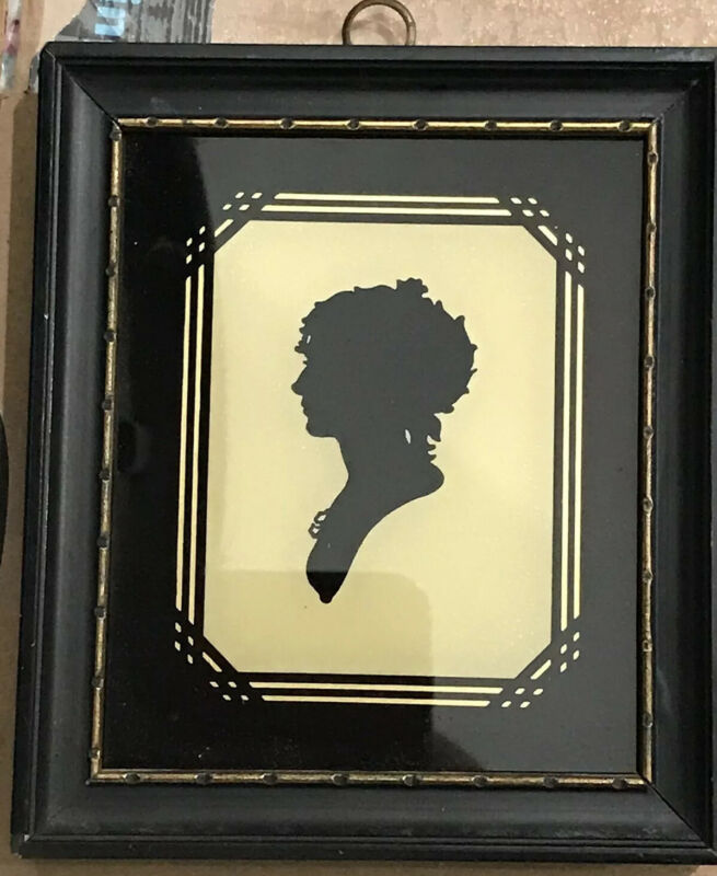 Vintage Portrait Silhouette Lady Victorian In Black Frame