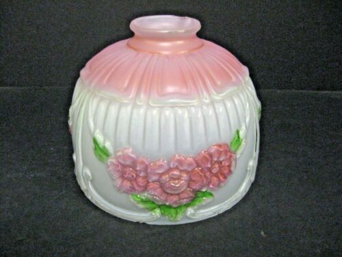 Antique Victorian-Art Deco pink white floral glass lampshade Boudoir bedroom dec