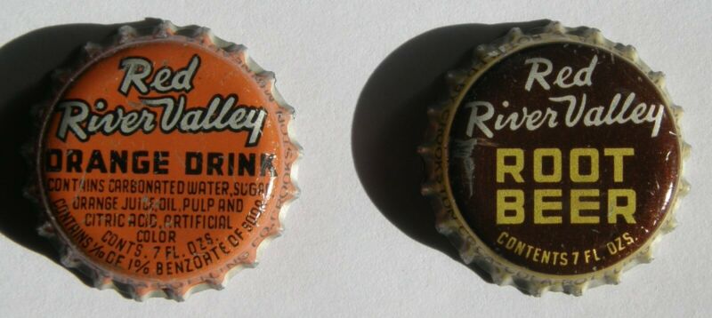 2 different Red River Valley soda bottle caps, Coca-Cola bottling, Crookston, MN