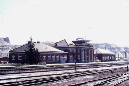 ORIGINAL KODACHROME GREAT NORTHERN - AMTRAK STATIO SCENE GREEN RIVER, WY 1978