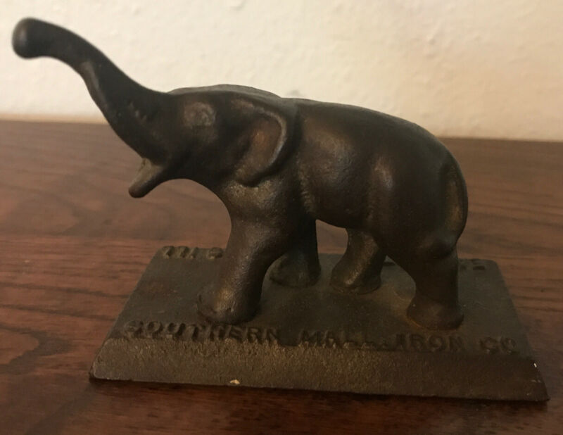 Title (ebay affiliate link): Vtg Cast Iron Elephant Paperweight Southern Malleable Iron East St Louis Ill.